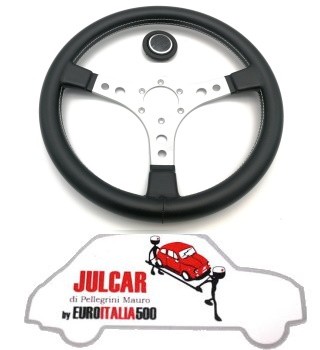 Volante sportivo con clacson nero e argento diametro 350 mm Fiat 500/126